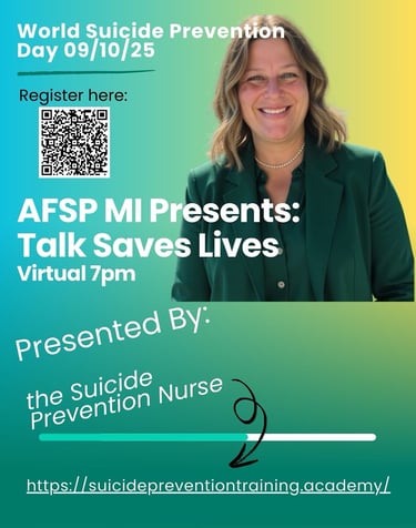 My work on suicide prevention started in 2018 as I began working on my Doctorate degree, with a focus and aim to improve care of patients in the hospital, admitted to a medical unit, and at risk for suicide. This research and work then led me on the personal and professional journey I have been on since, providing expert support to hospitals and health systems, as well as education to communities.